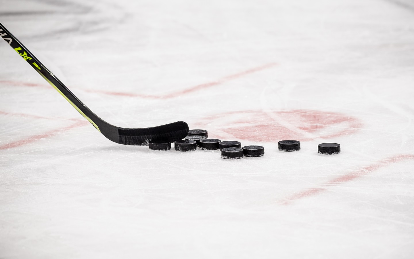 Trainingspucks vor dem Spiel zwischen den Eisbären Berlin und Red Bull München am 14.01.2022 in Berlin