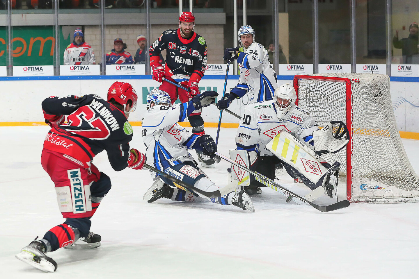 Angefangen hat der Mittelabschnitt ähnlich wie das erste Drittel: Miglio traf im Breakaway nach ein paar gespielten Sekunden nur in die Fanghand von Neffin. Den Treffer erzielten aber wieder die Gäste durch Postel, der im Konter die Scheibe über Bitzers Stockhand ins Tor setzte. Die Wölfe arbeiteten weiter hart und drängten auf den erneuten Ausgleich. Man ließ zunächst zwar einige Hochkaräter liegen, belohnte sich in der 33. Minute dann aber doch: McNeill, der selbst kurz vorher noch am Pfosten scheiterte, arbeitete die Scheibe durch die Schoner von Neffin ins Tor und ließ seine Jungs jubeln. Die Freude hielt jedoch gerade einmal 14 Sekunden. Dann bestrafte Andres einen Selber Fehlpass in der eigenen Zone mit dem 2:3. Im Anschluss gab es wieder einige Nickligkeiten und es hagelte demzufolge Strafzeiten gegen beide Teams.