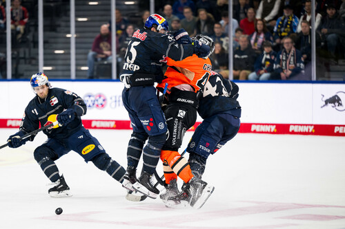 Durchatmen war angesagt, als in der bayerischen Landeshauptstadt am Freitag die Schlusssirene ertönte. Nach einer 6:2-Führung zu Beginn des Schlussabschnitts musste Schwarz-Orange in der Endphase mächtig zittern. Fabio Pfohl, zuvor schon dreimal Vorlagengeber, sorgte schließlich für die Entscheidung (7:5).