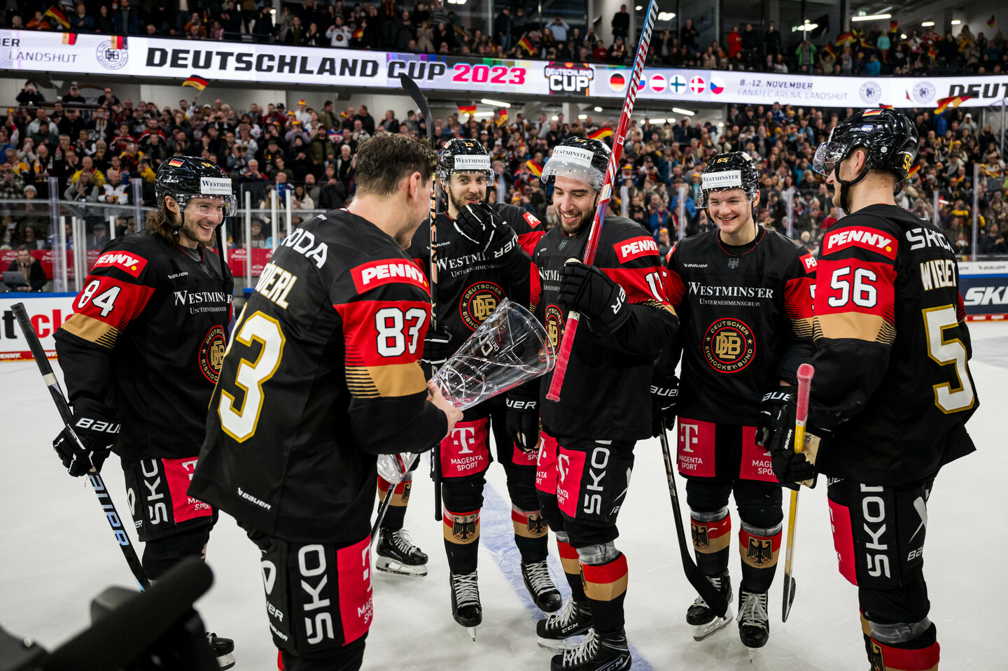 Die deutsche Eishockey-Nationalmannschaft hat zum dritten Mal in Folge und zum zehnten Mal insgesamt den Deutschland-Cup gewonnen. Vor 4.200 Zuschauern siegte die Slowakei bei der letzten Partie des diesjährigen Turniers mit 2:1. Für die Mannschaft von Bundestrainer Harald Kreis traf Kapitän Leo Pföderl.