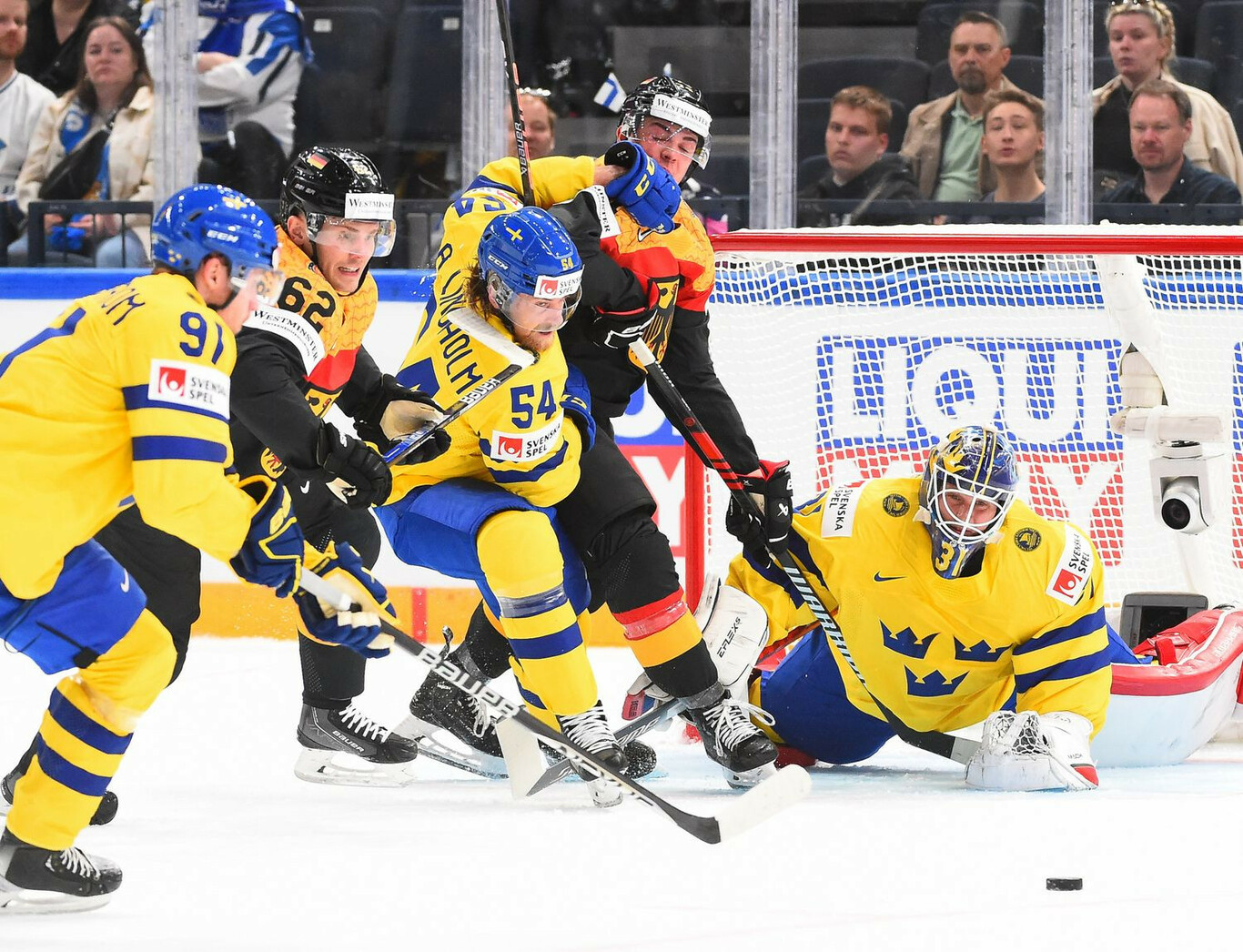 Die deutsche Nationalmannschaft startete gegen die Schweden gut ins Spiel und hatte gleich in der zweiten Minute die erste Chance durch Fabio Wagner, nachdem Marcel Noebels an der blauen Linie die Scheibe erobern und so den Angriff einleiten konnte. In der fünften Minute prüften die Schweden zum ersten Mal DEB-Goalie Mathias Niederberger, der aber die Scheibe ohne Mühe parieren konnte. Im Anschluss hatte Parker Tuomie die nächste Gelegenheit für Team Deutschland. Sein Schuss wurde aber vom Schweden Leo Carlsson abgefälscht und flog am Tor vorbei. Jacob De La Rose war in der 18. Minute für die bis dahin beste Chance für die Favoriten aus Schweden verantwortlich, doch Mathias Niederberger behielt den Überblick und sicherte den Rebound. Kurz vor der Pause spielte das Team von Bundestrainer Harald Kreis zum ersten Mal im Powerplay, konnte daraus aber keinen Torerfolg ziehen.