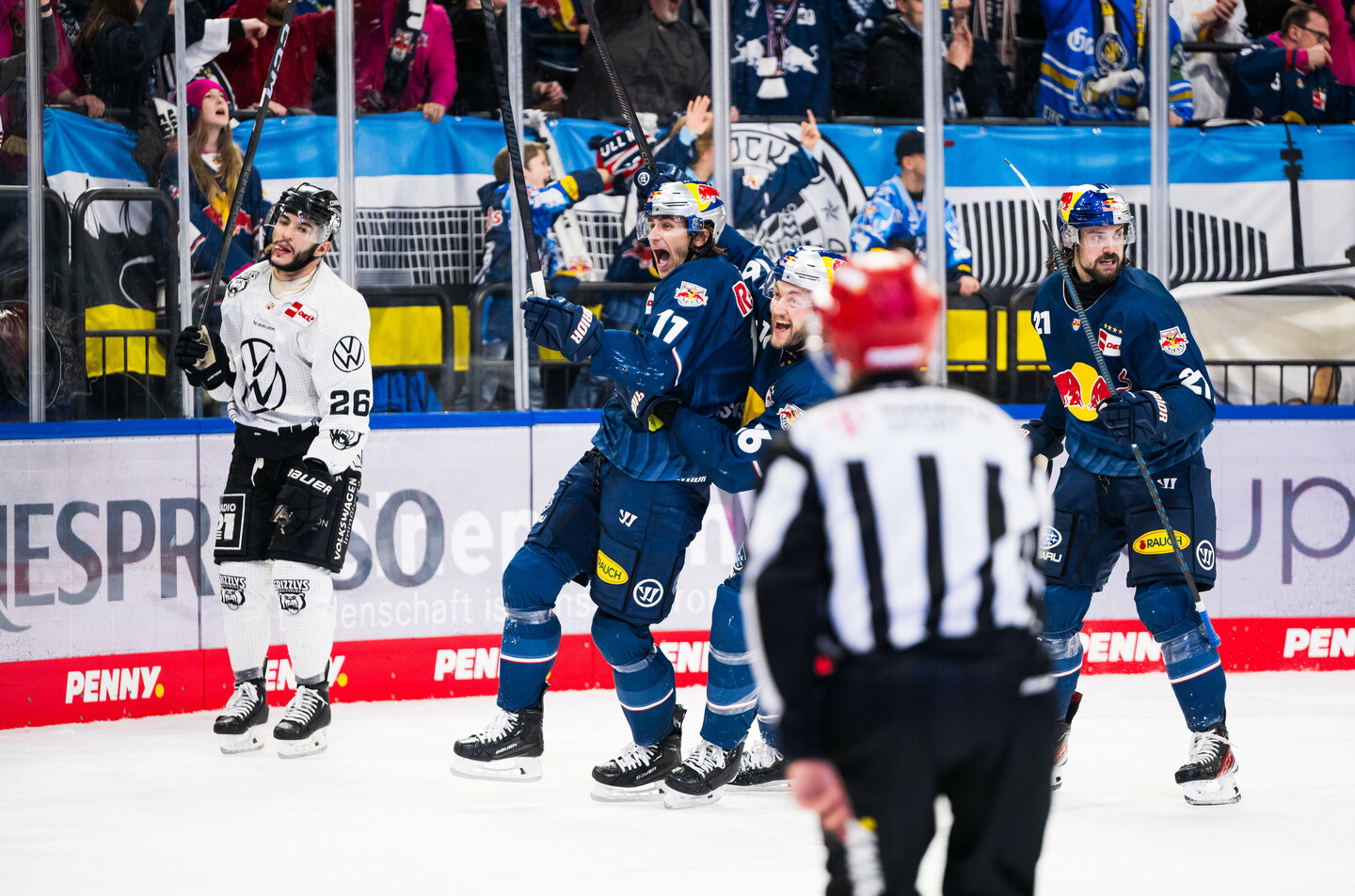 Nach nur 40 Sekunden im Schlussabschnitt tauchte Ehliz frei vor Weitzmann auf, doch auch das Geburtstagskind traf nicht zum längst überfälligen 2:2. Die Red Bulls setzten ihren Sturmlauf dennoch unverdrossen fort und erspielten sich Chance um Chance. Den Grizzlys gelang es nur selten, gefährlich vors Münchner Tor zu kommen, aber ihr Defensivbollwerk hielt. Bis zur 54. Minute: Ehliz bediente DeSousa, der in der Folge gekonnt einnetzte. Historischer Punkt für Ehliz, Ausgleich für den viermaligen deutschen Meister! Und die Red Bulls setzten in der Schlussminute noch einen drauf: Mit seinem 100. DEL-Tor markierte Eisenschmid noch den Siegtreffer für den EHC Red Bull München.