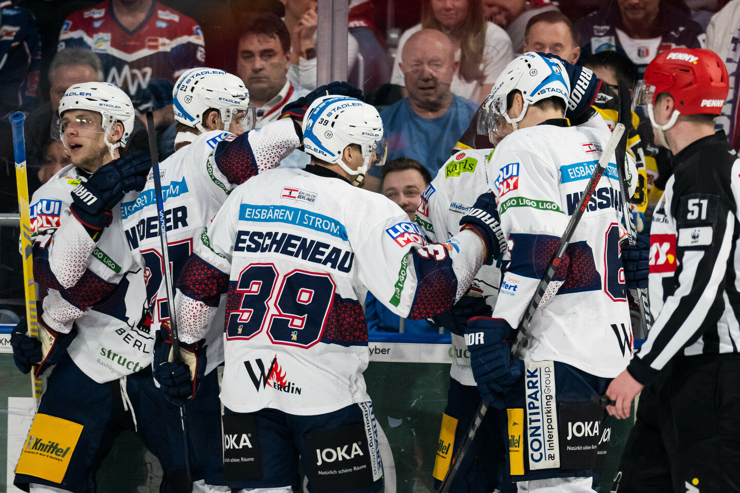 • Eisbären Berlin: Hildebrand (Stettmer) – Müller, Wissmann (C); Melchiori, Schemitsch; Geibel, Ellis (A); Bartuli – Noebels (A), Boychuk, Pföderl; Tiffels, Byron, Ronning; Veilleux, Eder, Descheneau; Hördler, Wiederer, Bergmann – Trainer: Serge Aubin