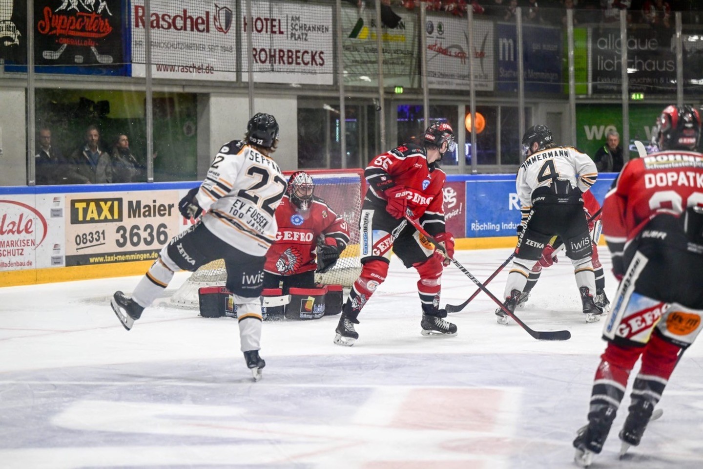 Der ECDC Memmingen siegt in einem hart umkämpften und engen Spiel gegen den EV Füssen in der Overtime. Rund 1900 Zuschauer verfolgten das Allgäu-Derby am Hühnerberg. Am Sonntag kommt es zum nächsten Derby am Lech.