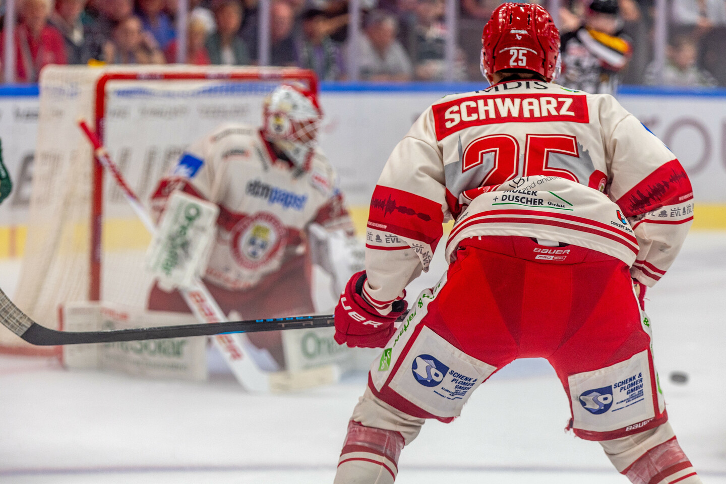Beim EVL gab ́s im Vergleich zum Auftaktsieg eine Änderung im Line-up: Für Alex Dersch (Oberkörperverletzung) rückte Elias Lindner in die Abwehr, die Acht-Tore- Offensive vom Freitag kam in der gleichen Formation aufs Eis, im Tor stand erneut Jonas Langmann. Wäre der Spielort nicht Rosenheim gewesen, hätte man im ersten Drittel Busbeine bei den Landshutern vermuten können, die zunächst arg passiv agierten. Schon nach 110 Sekunden erzielte Luigi Calce das 1:0 für die Gastgeber, die danach am zweiten Treffer schnupperten. Wichtig für Spielstand und Moral war, dass die Rot- Weißen eine 62 Sekunden dauernde 3-gegen-5-Unterzahl (15./16.) killen konnten, so dass es nur mit einem Ein-Tor-Rückstand in die erste Pause ging.