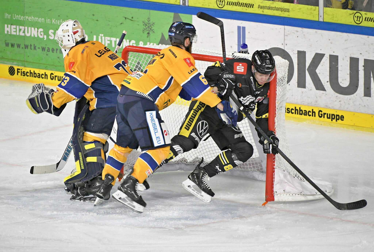 Spannung kam noch einmal auf, als Daniel Bruch in der 55. Minute eine Fünf-Minuten-Strafe plus Spieldauer-Disziplinarstrafe erhielt. Füchse-Coach Christof Kreutzer setzte alles auf eine Karte, nahm Neiße vom Eis und ließ mit zwei Mann Überzahl spielen. Der Mut wurde kurz belohnt: Charlie Jahnke verkürzte in der 58. Minute auf 2:4. Doch trotz großem Kampf blieb es beim Sieg der Krefeld Pinguine.
