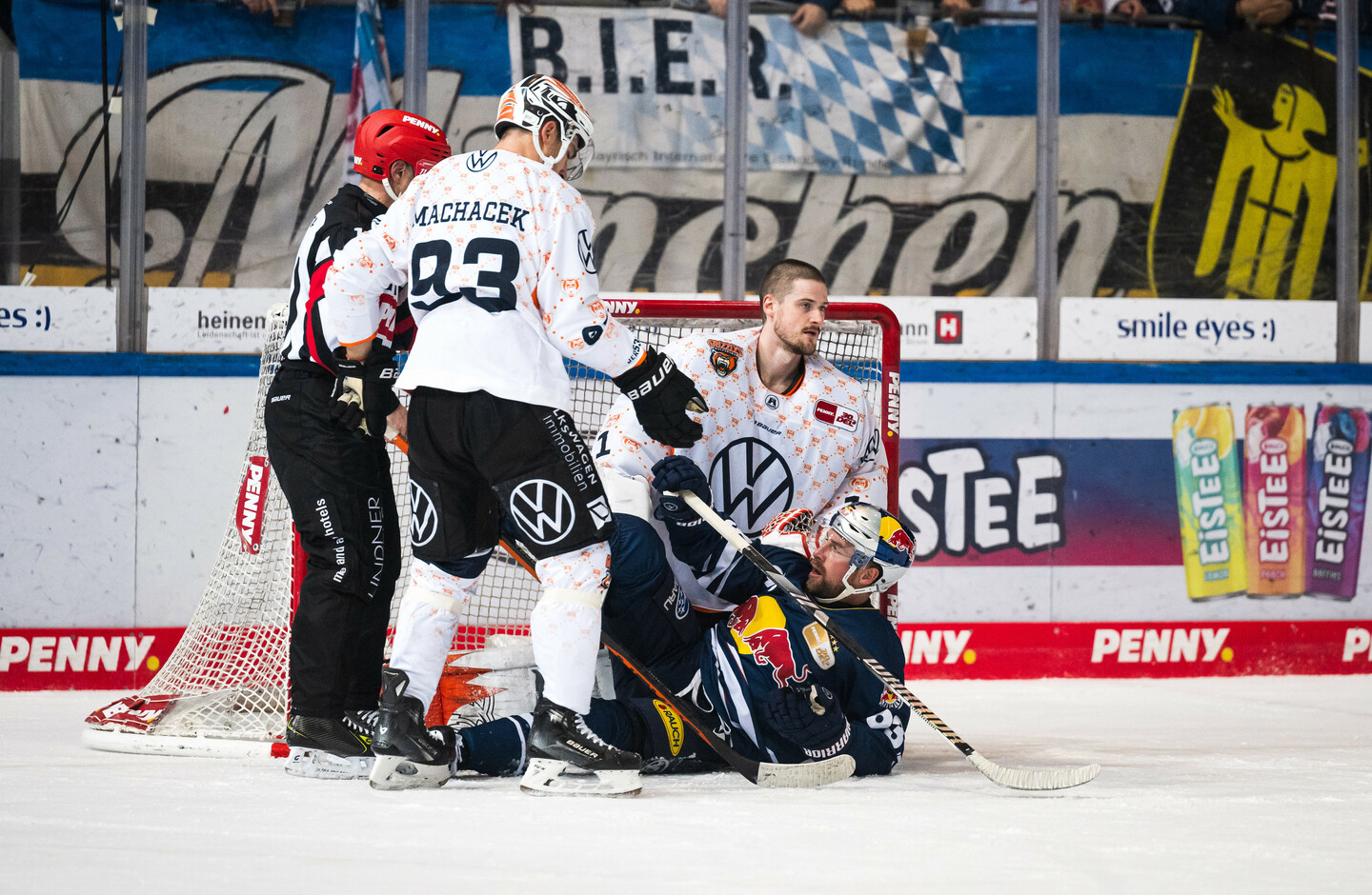 Wolfsburg investierte im Schlussabschnitt mehr in die Offensive, die Red Bulls verteidigten aber clever. Bis in die Schlussphase hielten sie die Gäste vom eigenen Tor fern. Erst als Grizzlys-Trainer Mike Stewart volles Risiko ging und den sechsten Feldspieler brachte (58.), musste München zittern. Doch die starke Defensive um Torhüter Niederberger rettete den knappen Vorsprung ins Ziel.