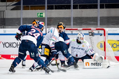 Red Bull München hat ein intensives Duell bei der Düsseldorfer EG mit 2:1 (1:0|1:1|0:0) gewonnen und ist in der PENNY DEL-Tabelle auf den vierten Platz geklettert. Ben Street und Ben Smith erzielten vor 4.000 Zuschauern die Münchner Tore. Einen großen Anteil am Sieg hatte auch Torhüter Henrik Haukeland.