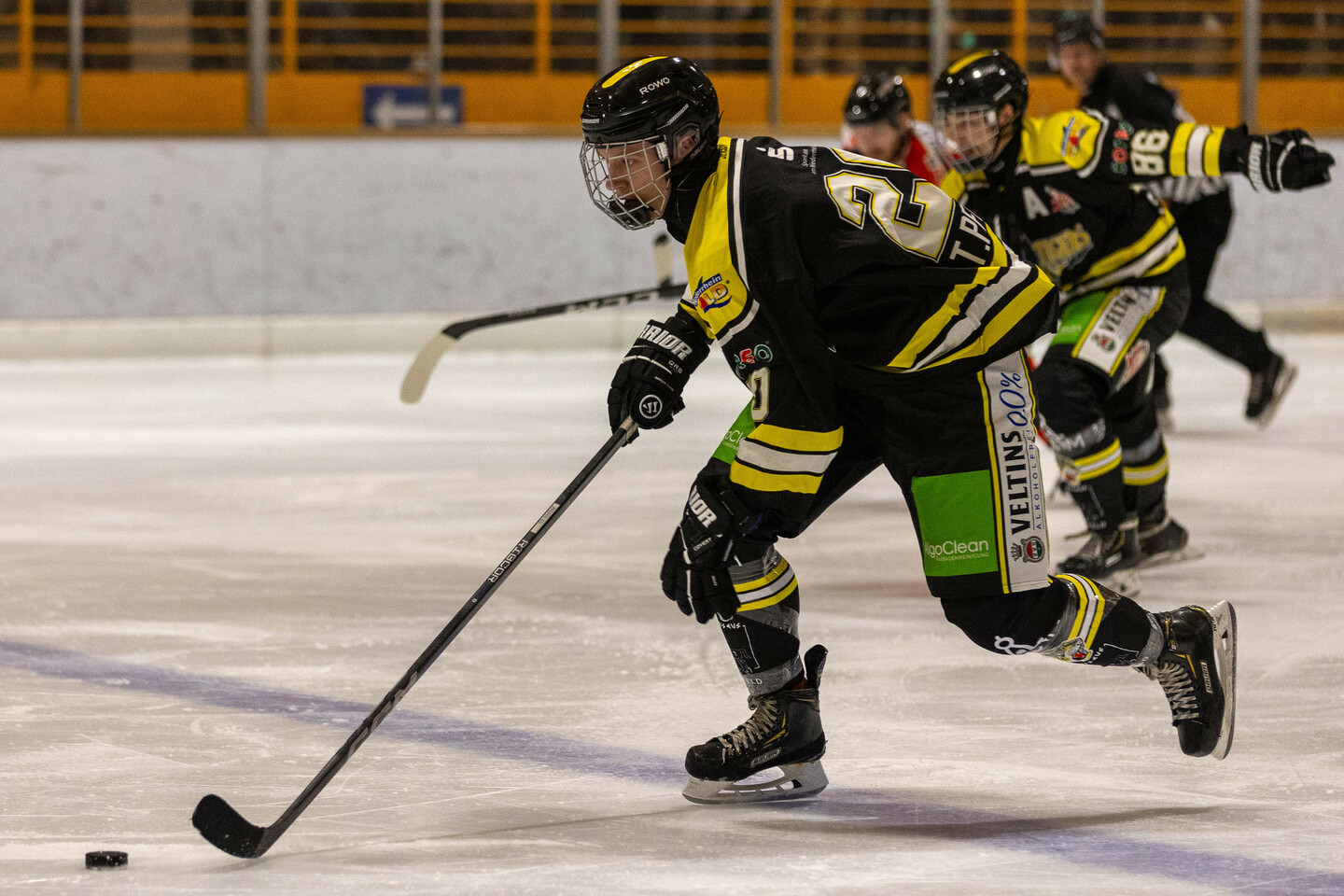 Trotzdem gingen die Gäste nach nicht einmal 2 Minuten durch Tristan Pfeifer (Zuspiel durch Christian Robens) in Führung. In der 5. Minuten erzielte Youngster Ryan Franz auf Zuspiel von Maximilian van Hees und Jan Hildenberg (sein erster Punkt im Seniorenbereich) das 2:0 aus Sicht der Black Tigers. Kurz vor Ende des 1. Drittels verkürzten die Gastgeber.