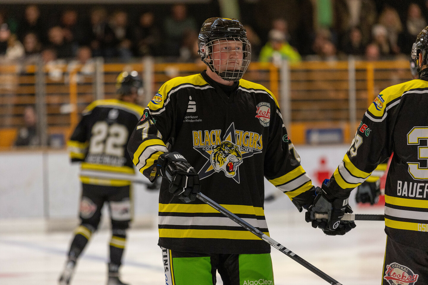 Am Sonntag stand in Moers das kleine Derby gegen die Kobras aus Dinslaken auf dem Spielplan. Kurz vor Spielbeginn musste Max Eberlein seinen Kader erneut umbauen. Frederic Hannen musste kurzfristig passen. Für ihn rückte der Youngster Ryan Franz in die erste Verteidigerreihe neben Lars Ehrich. Der 2. Förderlizenzspieler Nikolas Maritzen verteidigte in seinem ersten Heimspiel für die Black Tigers in der 2. Reihe neben Janis Lachmann. Das Spiel begann offen mit Chancen auf beiden Seiten. Trotz mehr Torschüssen für den GSC stand es nach dem 1. Drittel durch ein Tor in der 15. Minute 0:1 aus Sicht der Gastgeber.