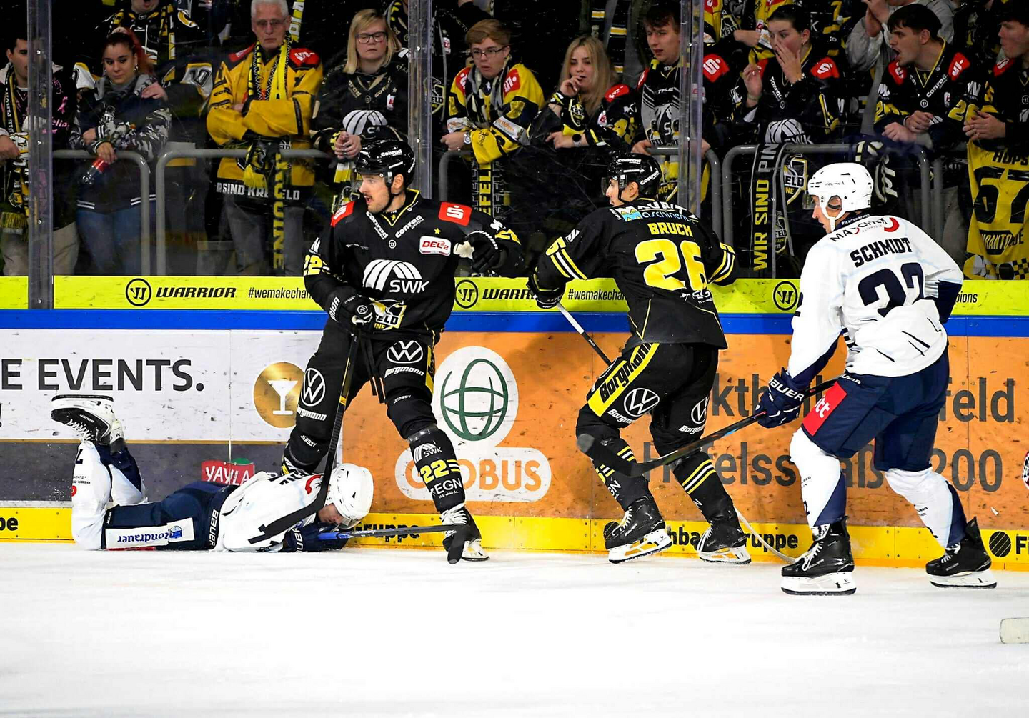 Die Krefeld Pinguine haben am Freitagabend ihre erste Heimniederlage der Saison kassiert. Gegen die Blue Devils Weiden unterlagen die Schwarz-Gelben vor 6947 Zuschauern in der Yayla Arena mit 2:3. Eine Fünf-Minuten-Strafe plus Spieldauer gegen Mathew Santos kurz vor der zweiten Drittelpause wurde zum Wendepunkt: Weiden nutzte das lange Powerplay eiskalt und drehte das Spiel mit zwei Treffern in Überzahl.