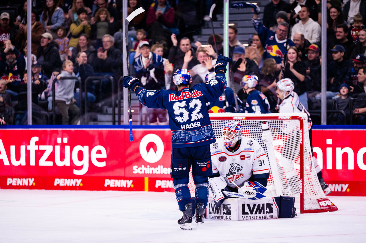 Im Schlussabschnitt kontrollierten die Red Bulls die Partie souverän, Torhüter Mathias Niederberger war kaum gefordert – und dennoch hellwach gegen Brett Murray nach einem Konter der Ice Tigers (49.). In der Schlussphase warfen die Gäste dann noch einmal alles nach vorne, doch auch mit dem sechsten Feldspieler (ab 57.) gelang ihnen der Anschluss nicht. Stattdessen markierte Ehliz auf der anderen Seite per Empty-Net-Treffer den 4:1-Endstand (59.) – und machte damit seinen Doppelpack perfekt.