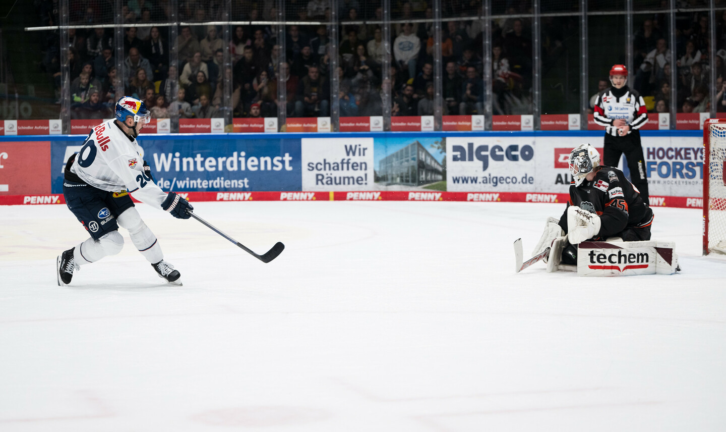 Der Ausgleich lag in der Luft, doch Cedric Schiemenz verwertete einen Alleingang zum 4:2 (51.). München gab aber nicht auf und kam durch Ehliz erneut auf ein Tor heran (54.). In der spannenden Schlussphase brachte Kaltenhauser früh den sechsten Feldspieler – mit Erfolg: Eder traf zum 4:4 (59.) – Verlängerung. In der Overtime glänzten beide Torhüter. Das Penaltyschießen musste die Entscheidung bringen. Hier besorgte Eder den Red Bulls den Zusatzpunkt. Max Kaltenhauser: „Wir waren im ersten Drittel nicht besonders gut. Das kommt vor. Ab dem zweiten Drittel haben wir dominiert und uns dafür mit dem Sieg belohnt.“