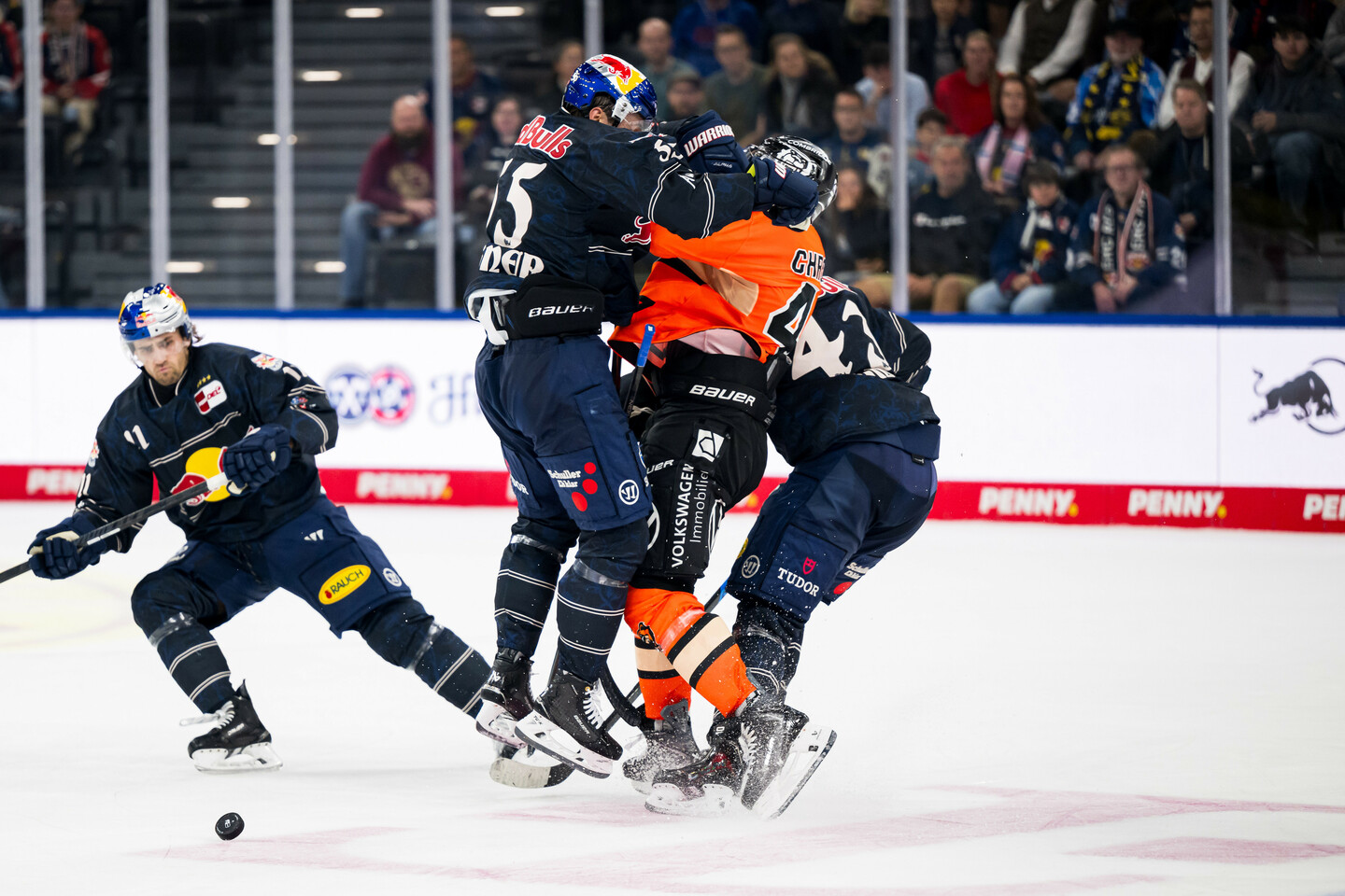 Ein ähnliches Bild auch im Schlussabschnitt. Zunächst erhöhte Matt Choupani für Wolfsburg (43.), ehe Eisenschmid kurz darauf auf 3:6 (45.) verkürzte. Ehliz legte sogar das 4:6 (47.) nach. Die Red Bulls erspielten sich weitere sehr gute Chancen, doch Grizzlys-Goalie Dustin Strahlmeier stand dem Anschlusstreffer im Weg – bis in die Schlussphase, als Münchens Trainer Oliver David den sechsten Feldspieler brachte. Das Risiko wurde belohnt: Hirose erzielte das 5:6 (59.). Der Ausgleich lag danach in der Luft, der Treffer fiel aber auf der anderen Seite: Fabio Pfohl (60.) besiegelte mit seinem Empty-Net-Treffer zum 5:7 die Niederlage der Red Bulls.