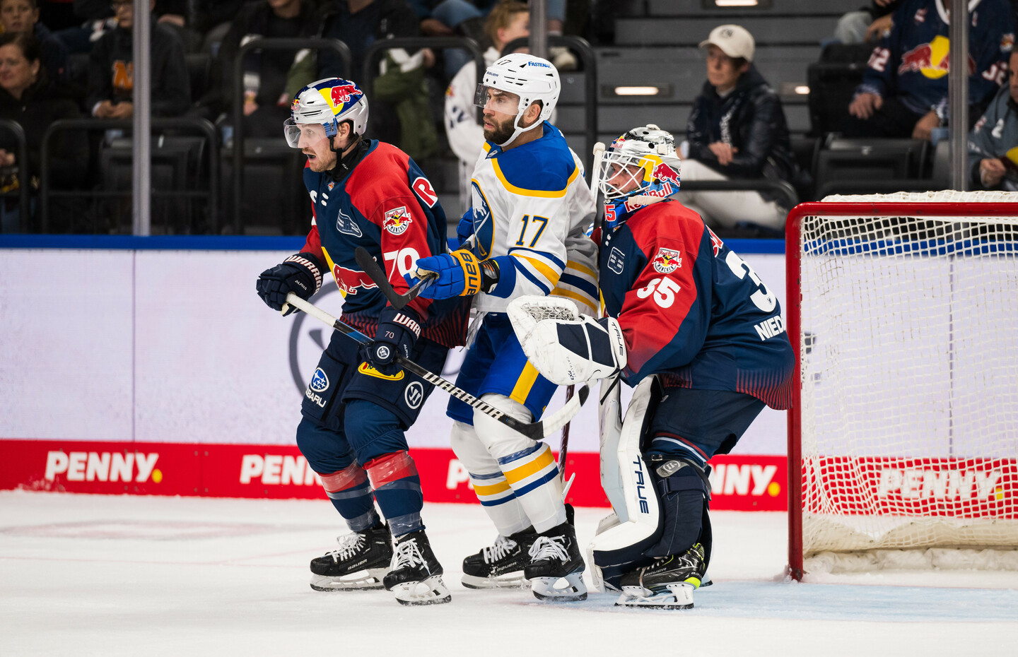 Münchens Trainer Toni Söderholm wechselte für den Schlussabschnitt den Torhüter: Für Niederberger stand nun Simon Wolf zwischen den Pfosten. Der Youngster zeigte mehrere gute Paraden, gegen den platzierten Schuss Peterkas war er allerdings machtlos (44.). Auf der anderen Seite suchten die Red Bulls auch nach dem 0:5 ihr Glück in der Offensive, ein Treffer gelang gegen die konzentrierte Sabres-Defensive aber nicht.