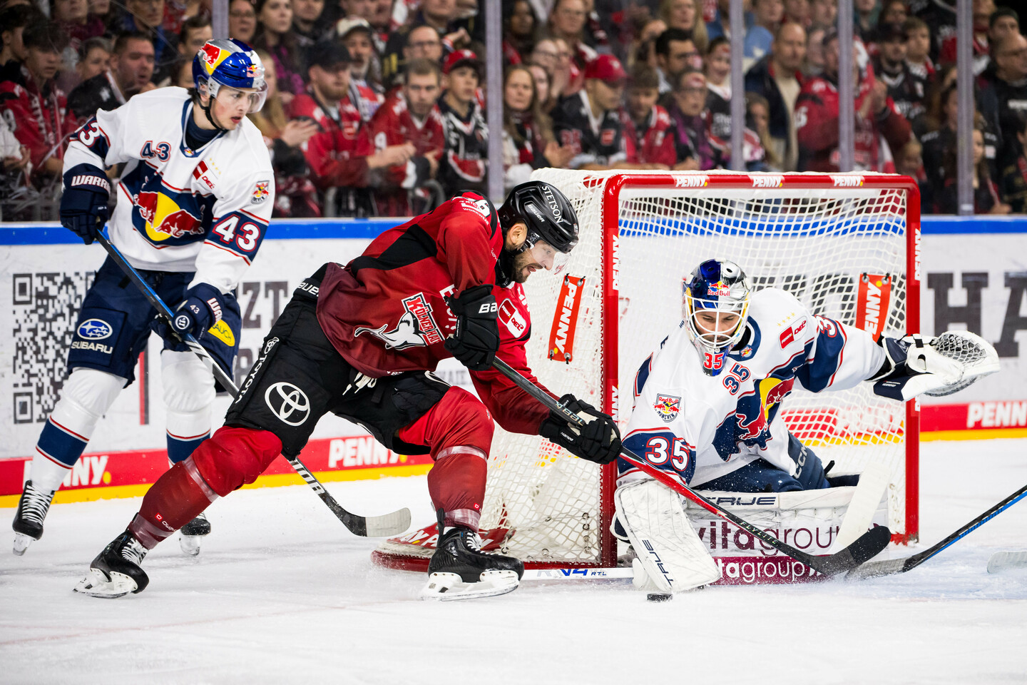 Köln startete mit Schwung ins Schlussdrittel, doch die Red Bulls überstanden die Anfangsphase ohne Gegentreffer und standen in der Folge defensiv stabil. Ein Abschluss von Patrick Russell (48.), der das Tor knapp verfehlte, blieb lange die einzige nennenswerte Möglichkeit der Haie. Ein Powerplay leitete schließlich die Schlussoffensive der Gastgeber ein – Nate Schnarr traf dabei nur die Latte (54.). In diese Druckphase hinein nutzte Markus Eisenschmid einen Entlastungsangriff der Münchner zum 2:0 und sorgte damit für die Entscheidung.