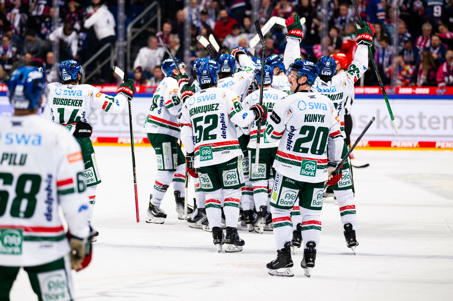 Die Augsburger Panther eilen in der PENNY DEL weiter von Sieg zu Sieg. Bei den Eisbären Berlin gewann der AEV nach einem hochklassigen Spiel letztlich verdient mit 4:3 nach Verlängerung. Die Tore für die Panther erzielten Alexander Blank (13., 63.), D.J. Busdeker (28.) und Cody Kunyk (44.). Für Berlin waren Jean-Sebastien Dea (5.), Markus Vikimgstad (8.) und Andeas Eder (41.) erfolgreich.