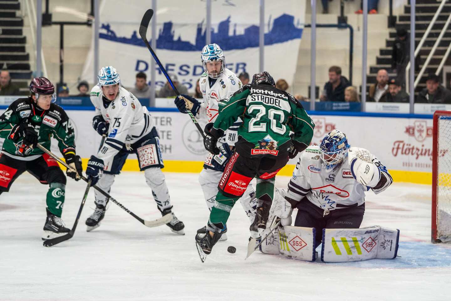 Ville Järveläinen leitete mit einer Energieleistung das 5:0 ein. Der kleine, emsige Stürmer, der noch immer auf sein erstes Saisontor wartet, eroberte sich die Scheibe an der Bande und versuchte es mit dem Bauerntrick, Travis Ewanyk staubte aus kurzer Distanz ab (33.). Zuvor verhinderte gegen Zack Dybowski noch der Pfosten des Dresdner Tores einen weiteren Rosenheimer Torerfolg.
