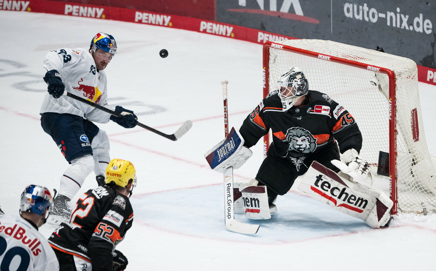 Das nächste Top-Team, dem die Löwen Punkte klauen. Nach dem Sieg in Mannheim und dem Erfolg in Overtime in Ingolstadt, mussten sich die Löwen erst im Penaltyschießen dem EHC Red Bull München mit 4:5 geschlagen geben. Vor 6289 Zuschauern in der Nix-Eissporthalle gab es vor der Länderspielpause noch einmal ein absolutes Herzschlagfinale.